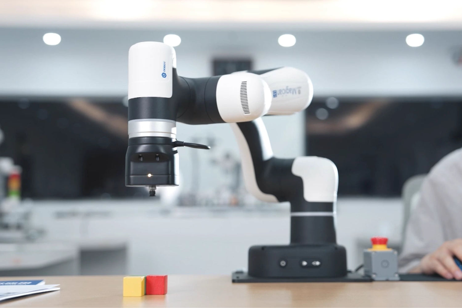 Der Magician Lite ist als K12-Schulroboter konzipiert: geringes Eigengewicht, moderate Traglast, integrierte Kollisionserkennung und ein begrenzter Arbeitsraum machen den Betrieb am Schultisch sicher und überschaubar. Die Sicherheitsfunktionen sind darauf ausgelegt, dass Lehrkräfte mehrere Systeme parallel beaufsichtigen können, ohne komplexe Industrie-Schutzumhausungen aufbauen zu müssen.