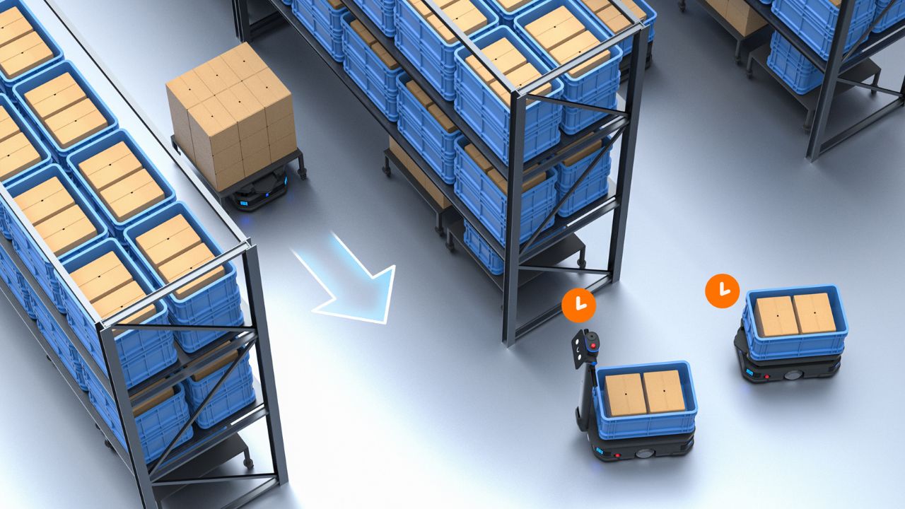 Die T600 Serie regelt Verkehr intelligent. Die Software erkennt Engstellen, steuert Kreuzungen und vergibt Vorfahrten, sodass Blockaden selten auftreten. In schmalen Zonen fahren die Geräte im Einspurmodus und wechseln in freien Bereichen auf parallele Bahnen. Begegnungen zwischen Robotern, Mitarbeitenden und Flurförderzeugen bleiben berechenbar. Diese Koordination erhöht die Nettofahrzeit, verringert Rangierbewegungen und sichert gleichmäßige Durchlaufzeiten, selbst in Stoßzeiten oder bei wechselnden Routen.